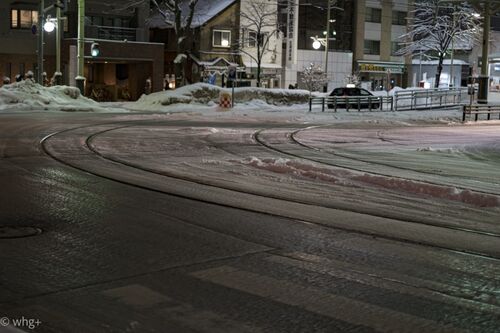 札幌市電、電停資生館小学校前・・・ 2020年2月28日の夜。この日は雪が降って街は薄っすら雪化粧。札幌の人が言うには、今年は雪が少ないとの事でしたが、僕にとっては十分な大雪。 札幌市電「241号車」 以前も紹介しましたが、「探偵はBARにいる2 ススキノ…