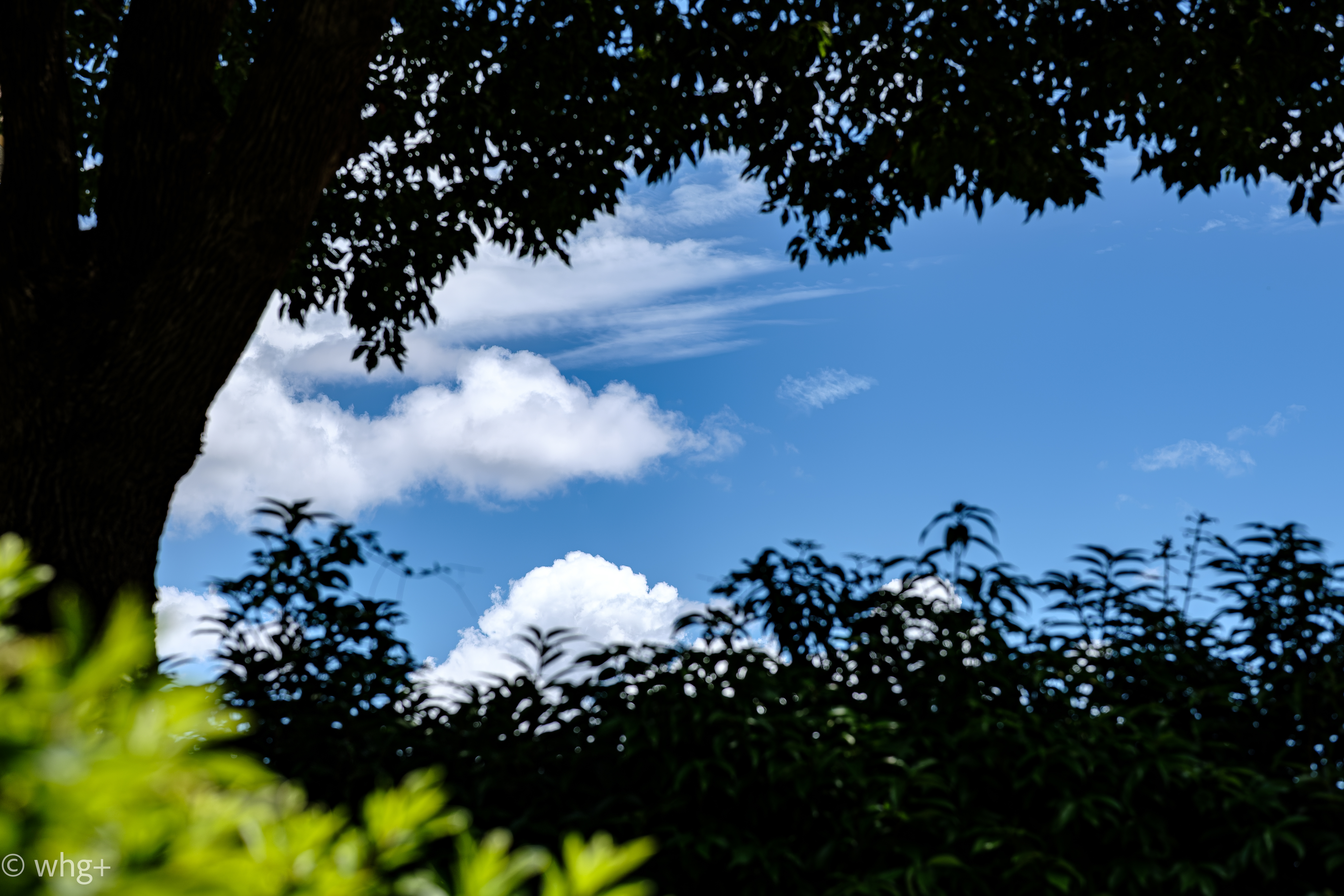 2025-07-23 小さな・夏・・ 夏景・・ 56mm F1.4 DC DN・・ X-T30+・・ 写真+ 樹木の額縁の先に入道雲。切り撮られた画に小さな夏を設える。 梅雨が明けて三連休が過ぎ、子供たちの夏休みも始まった。盛夏本格始動。 僕はどこかに小さな夏を見つけて、こじんまり過ごそうと思う・・・ 56mm F1.4 DC DN + X-T30