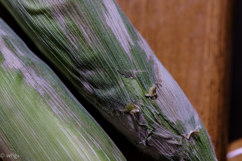 いつものスーパーで買ってきた皮付きのとうもろこし。皮のヤレ具合から収穫してから少し経ってしまったものと思われ、店先でも手にする人がいなかった。